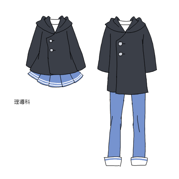性別不明でも入学できるので、どの性別がどちらの制服を着ても良い。