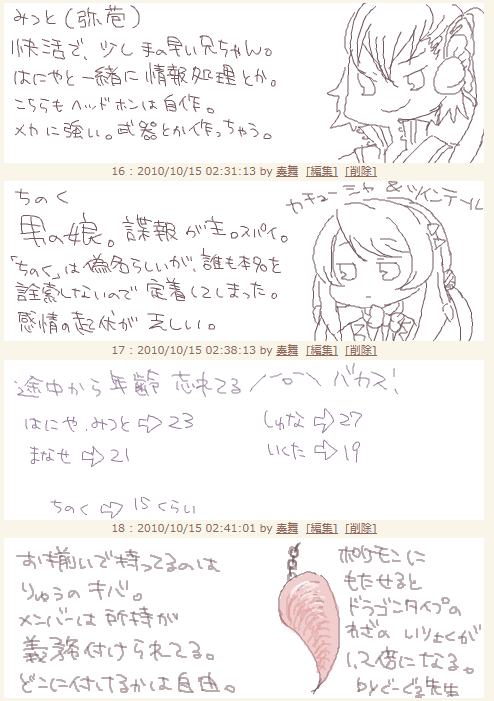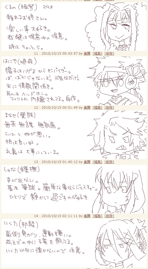 結音 (ゆいのね) 楊啾(ような) 鐙(たかつき) 漣玲(れんれい) 戦(そよ) 綴依(つづえ) 沽(ねうち) 坡(なな) |