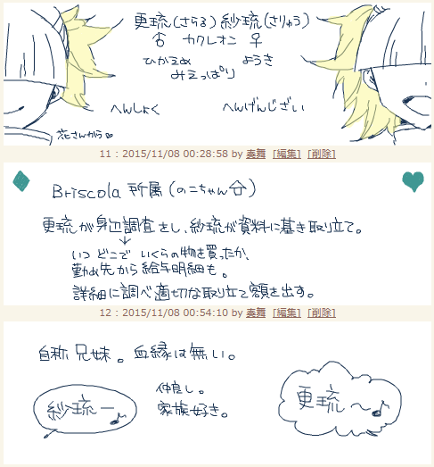 本家を始め、殆どの分家は血の繋がった親族で構成されているが、綛音に血の繋がりは無い。 奄綯自身は紋音の血を引いているが、綛音が末席に位置しているのはこの構成の為。
